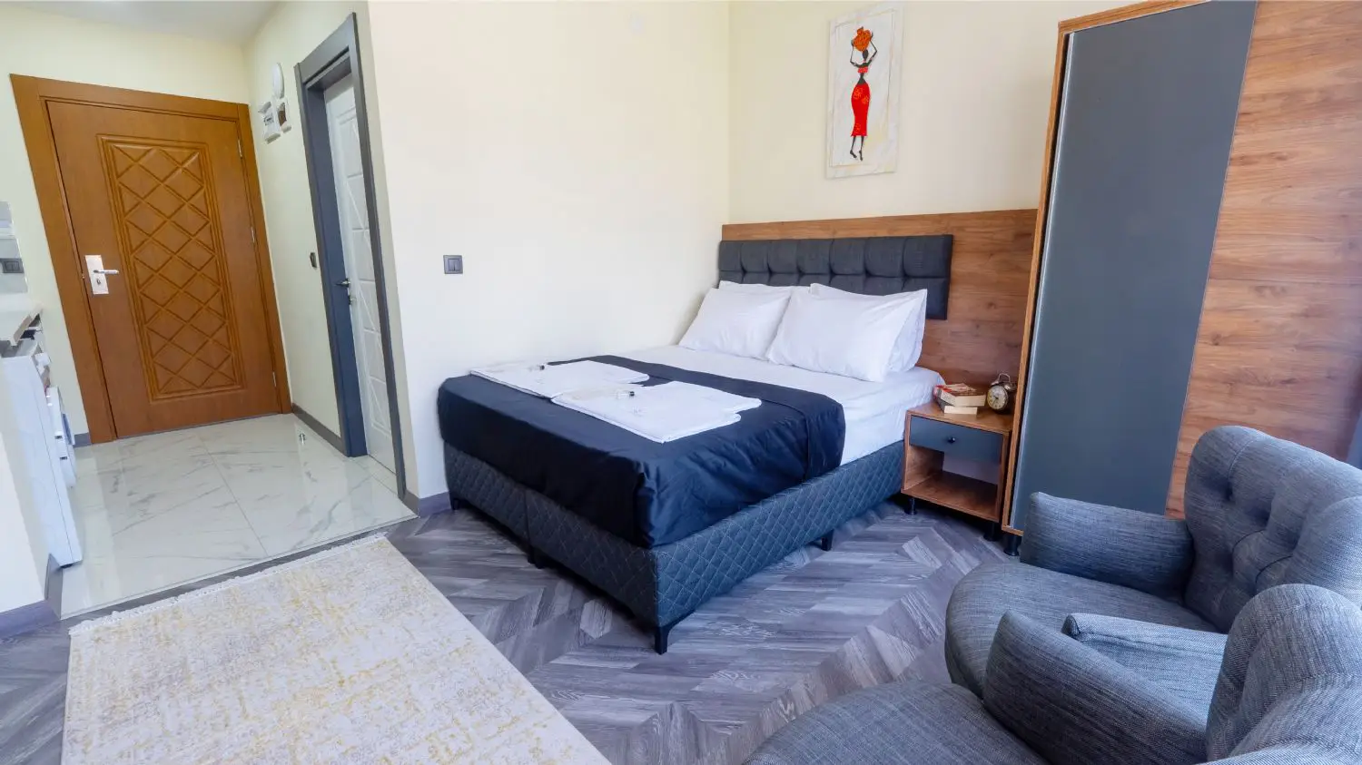 Modern çizgiler taşıyan odalarımız, tüm ihtiyaçlarınızı karşılayacak kalitede ve güvende tasarlanmış olup, konforunuz ve rahatlığınızı ön planda tutacaktır.